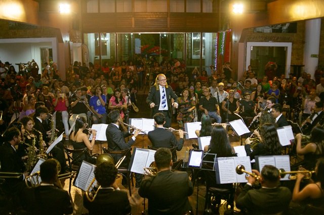 Apresentações ocorreram na noite deste domingo (11), na Praça de São Sebastião, reunindo seis conjuntos musicais do IMWF e escolas da Rede Pública de Educação